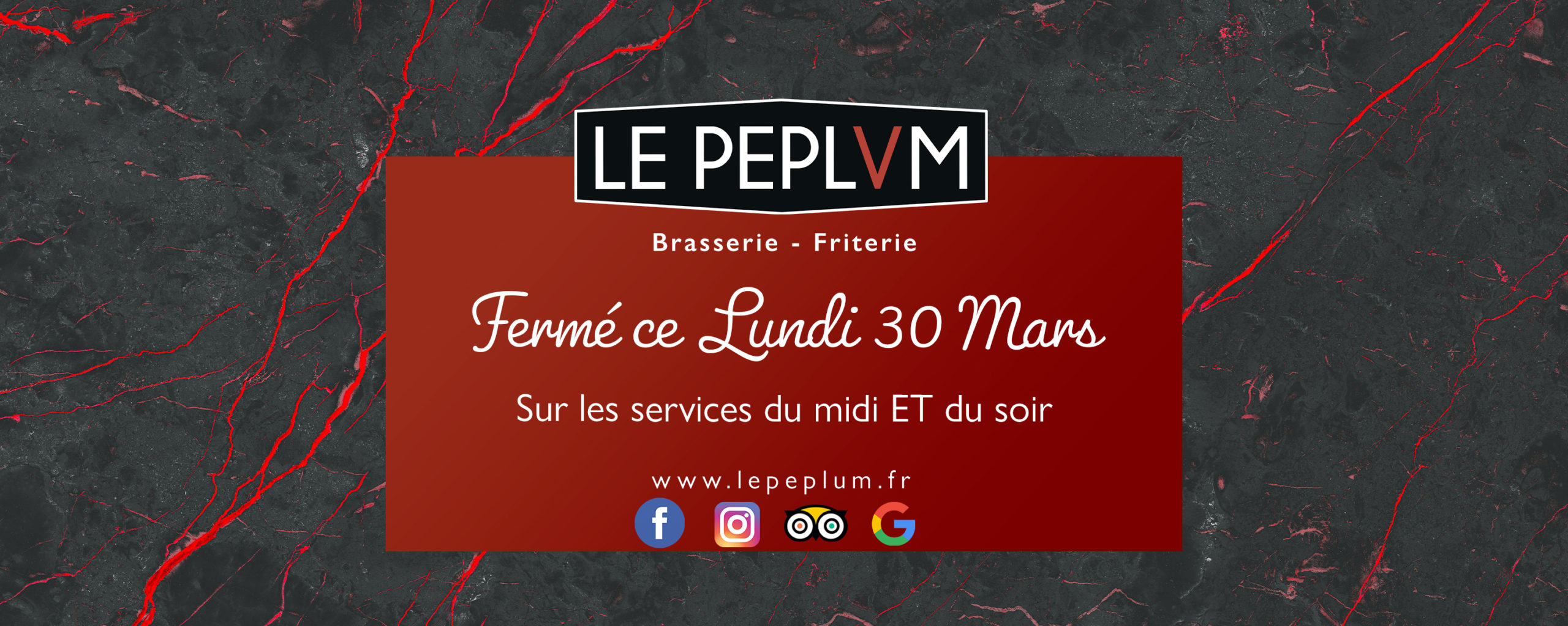 🍟 Le Peplum sera fermé ce Lundi 30 Mars 2026 sur les services du midi et du soir 🍔