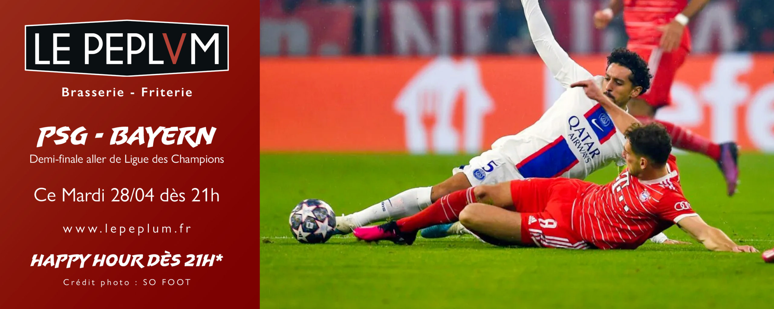 PSG – BAYERN ce Mardi 28/04 dès 21h au Peplum !