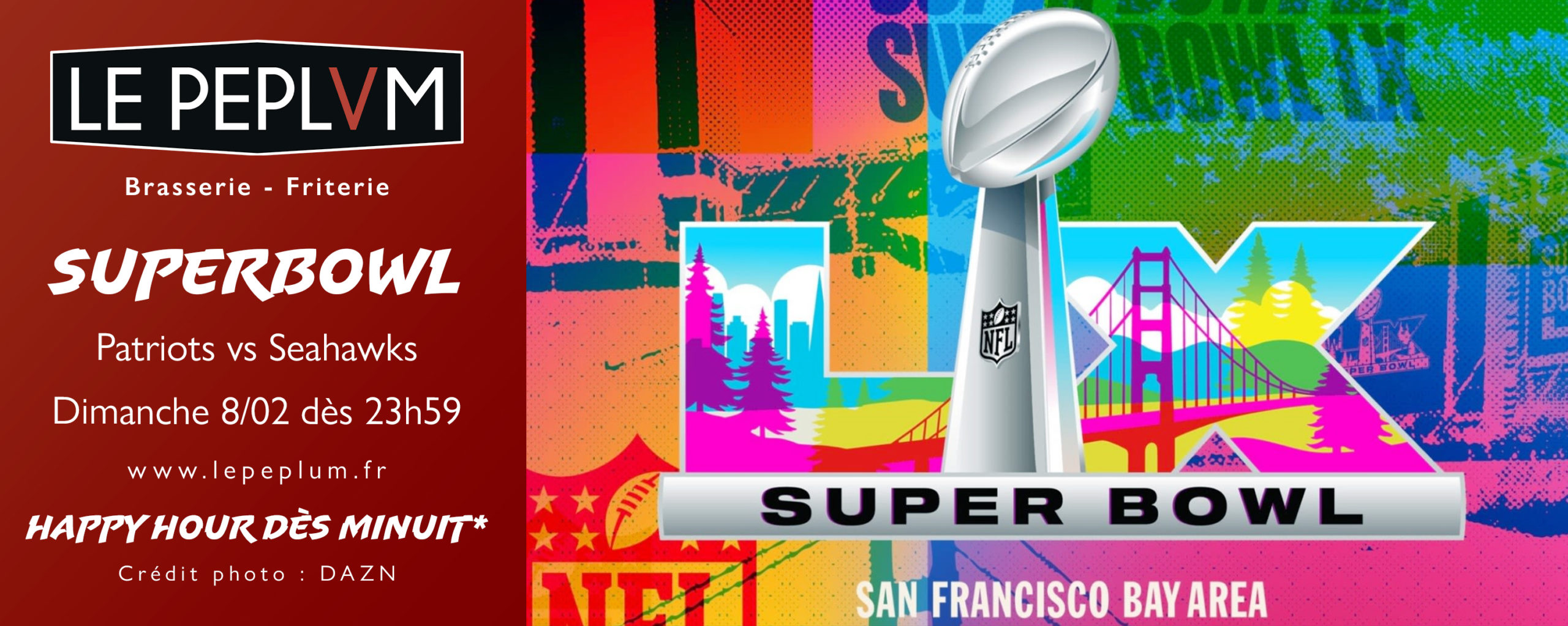 🏈 Exceptionnellement et à l’occasion du Superbowl 2026, Le Peplum sera ouvert du Dimanche 08/02 18h40 au Lundi 09/02 4h du matin, sans interruption 🤪